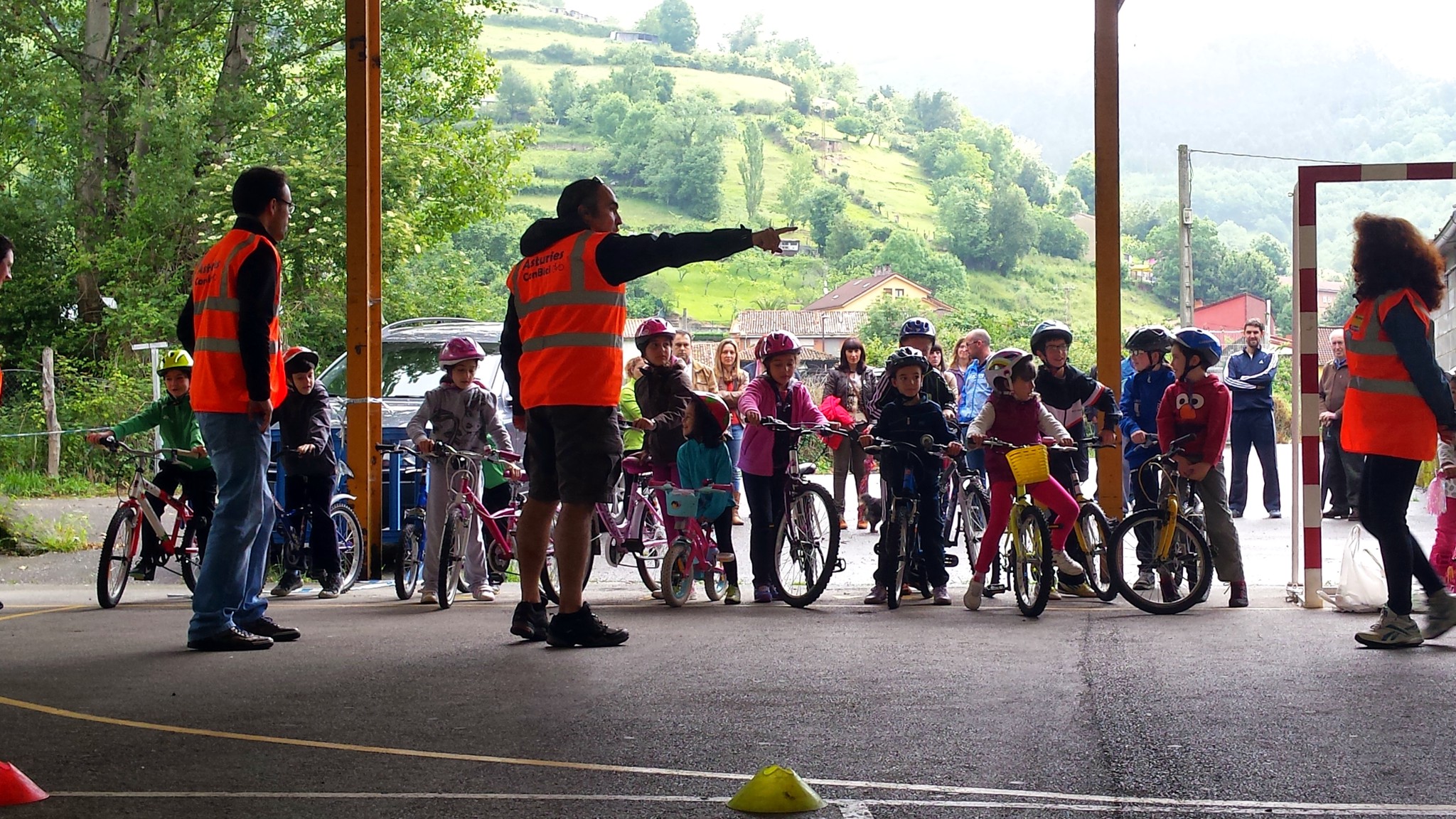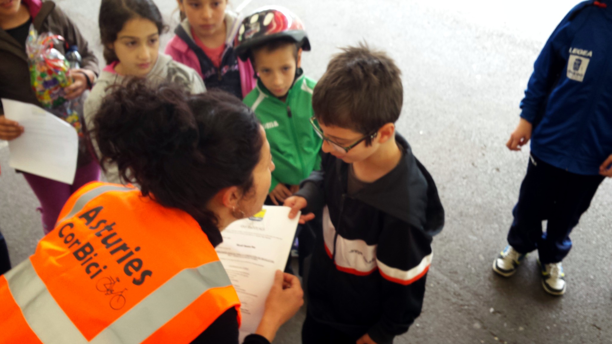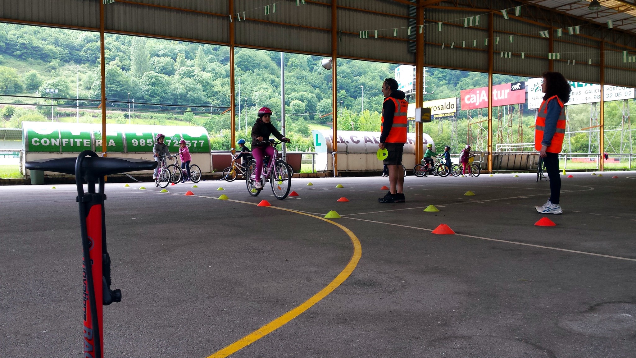 Es por ello que este sábado 31 de mayo de 2014 y a petición de la asociación de vecinos de la ciudad ovetense de Olloniego organizamos una biciescuela en las aulas de unas 3 horas de duración para que unos 20 chavales de entre 4 y 9 años aprendieran a utilizar de forma responsable y con seguridad esa amiga de dos ruedas: la bicicleta. El día parecía no acompañar ya que amenazaba lluvia pero poco a poco los peques, acompañados por sus tutores legales, fueron llegando al polideportivo anexo al campo de fútbol. Los chavales dejaron las bicis apoyadas en el suelo para acto seguido escuchar con atención las primeras explicaciones teóricas: ropa, calzado, la regla de la M para realizar una revisión rápida de la bici, como apoyarla… Acto seguido dividimos al montón en 3 grupos para empezar con la práctica. Sería para ellos lo más divertido de la mañana. Un circuito en el que les desafiamos a 10 módulos dinámicos en los que les reseñamos la situación real de donde debían aplicarla. Coger, montar y desmontar de la bici, arranque, pedaleo y parada, control de dirección mediante un slalom de conos, uso de las marchas, frenadas de emergencia tanto con uno, otro o ambos frenos, esquivar obstáculos, señalizar maniobras tanto a la derecha como a la izquierda así como saber mirar en varias direcciones era la temática básica de esta parte práctica. Tal era la diversión, que el tiempo se les pasó volando e incluso nos sobró tiempo de esas 3 horas que habíamos calculado. Y para finalizar, una entrega de diplomas con sorpresa incluida: un revoltijo de golosinas que les dejaría, más si cabe, buen sabor de boca. Galería fotográficaDisponible en nuestro perfil de Facebook. |