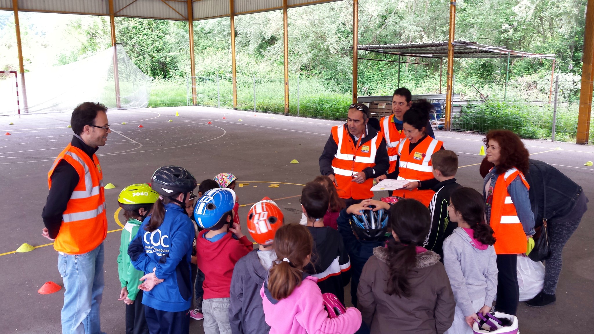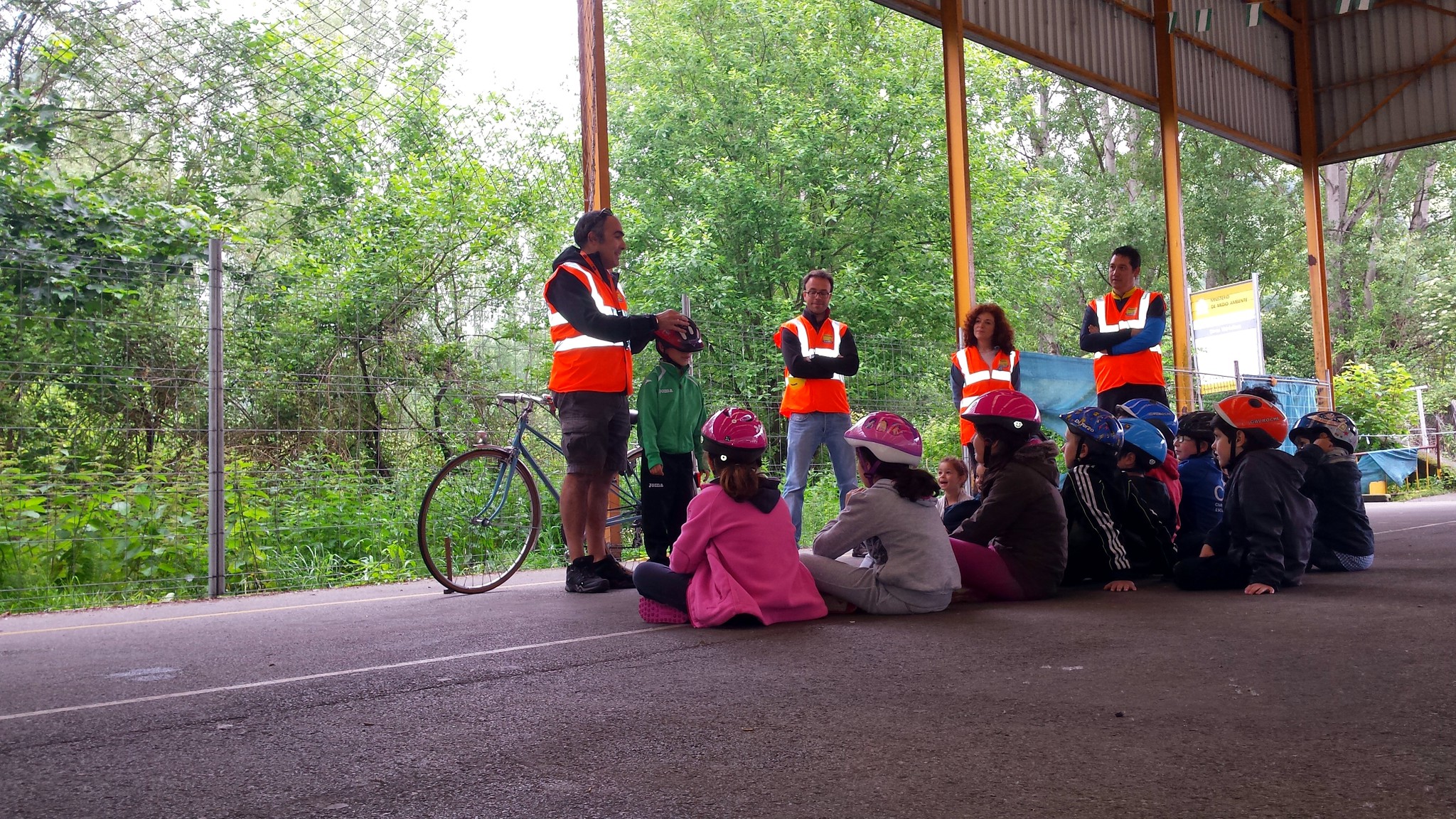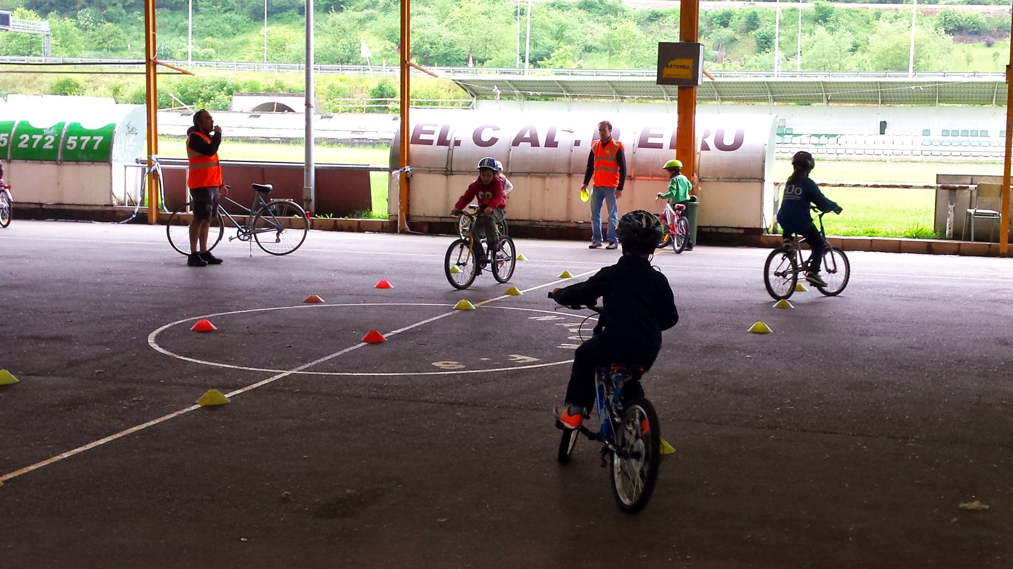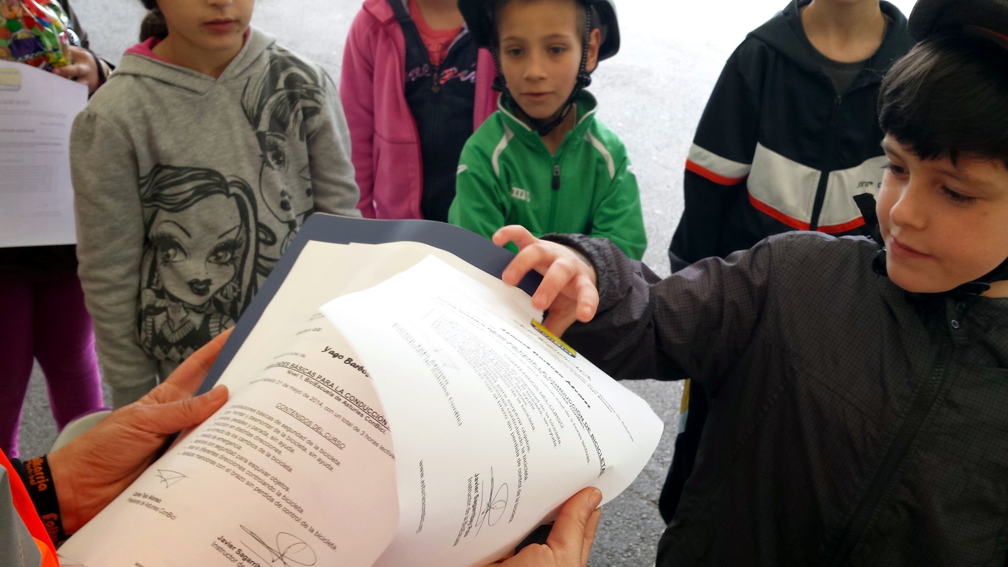 Es por ello que este sábado 31 de mayo de 2014 y a petición de la asociación de vecinos de la ciudad ovetense de Olloniego organizamos una biciescuela en las aulas de unas 3 horas de duración para que unos 20 chavales de entre 4 y 9 años aprendieran a utilizar de forma responsable y con seguridad esa amiga de dos ruedas: la bicicleta. El día parecía no acompañar ya que amenazaba lluvia pero poco a poco los peques, acompañados por sus tutores legales, fueron llegando al polideportivo anexo al campo de fútbol. Los chavales dejaron las bicis apoyadas en el suelo para acto seguido escuchar con atención las primeras explicaciones teóricas: ropa, calzado, la regla de la M para realizar una revisión rápida de la bici, como apoyarla… Acto seguido dividimos al montón en 3 grupos para empezar con la práctica. Sería para ellos lo más divertido de la mañana. Un circuito en el que les desafiamos a 10 módulos dinámicos en los que les reseñamos la situación real de donde debían aplicarla. Coger, montar y desmontar de la bici, arranque, pedaleo y parada, control de dirección mediante un slalom de conos, uso de las marchas, frenadas de emergencia tanto con uno, otro o ambos frenos, esquivar obstáculos, señalizar maniobras tanto a la derecha como a la izquierda así como saber mirar en varias direcciones era la temática básica de esta parte práctica. Tal era la diversión, que el tiempo se les pasó volando e incluso nos sobró tiempo de esas 3 horas que habíamos calculado. Y para finalizar, una entrega de diplomas con sorpresa incluida: un revoltijo de golosinas que les dejaría, más si cabe, buen sabor de boca. Galería fotográficaDisponible en nuestro perfil de Facebook. |