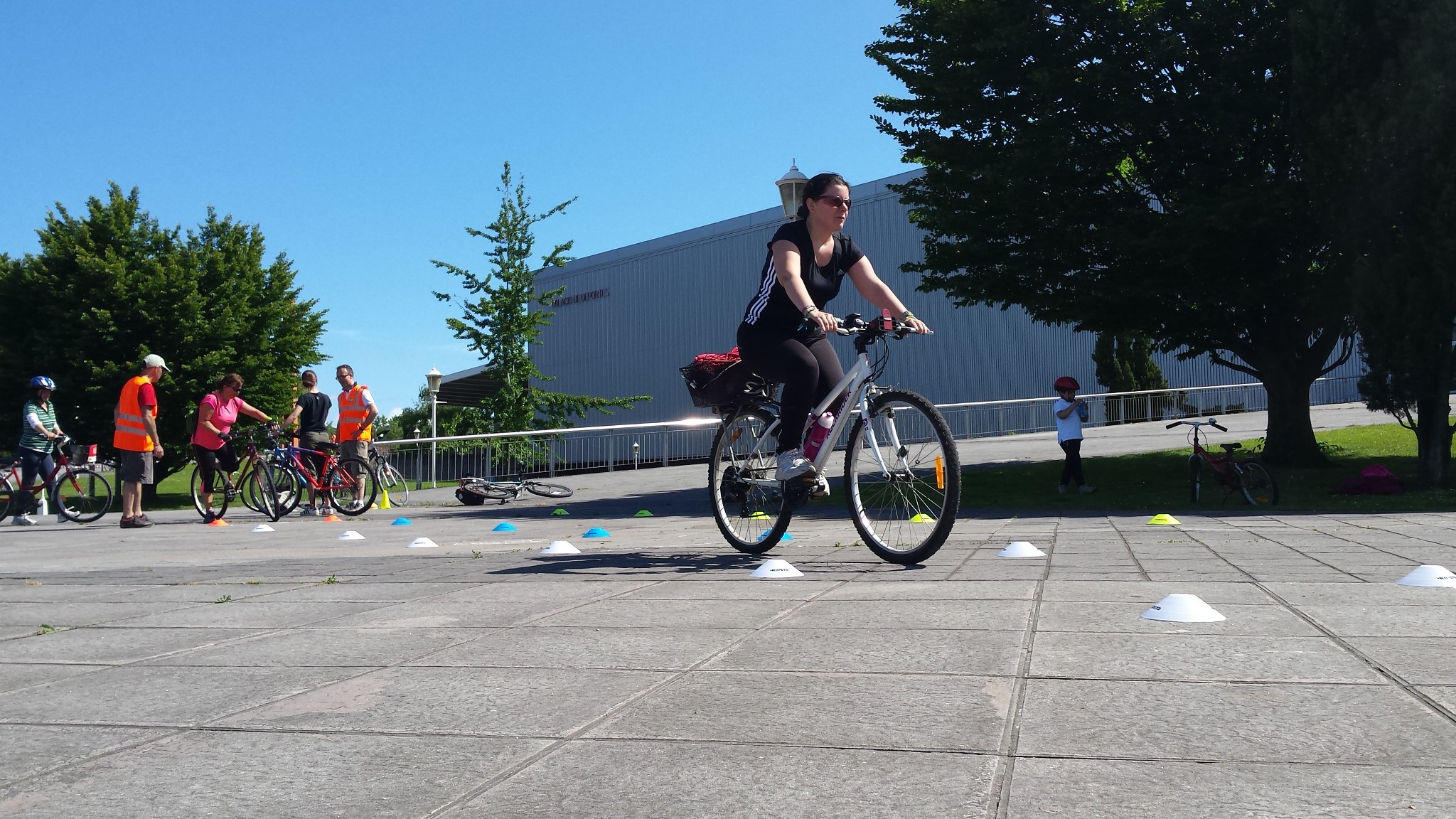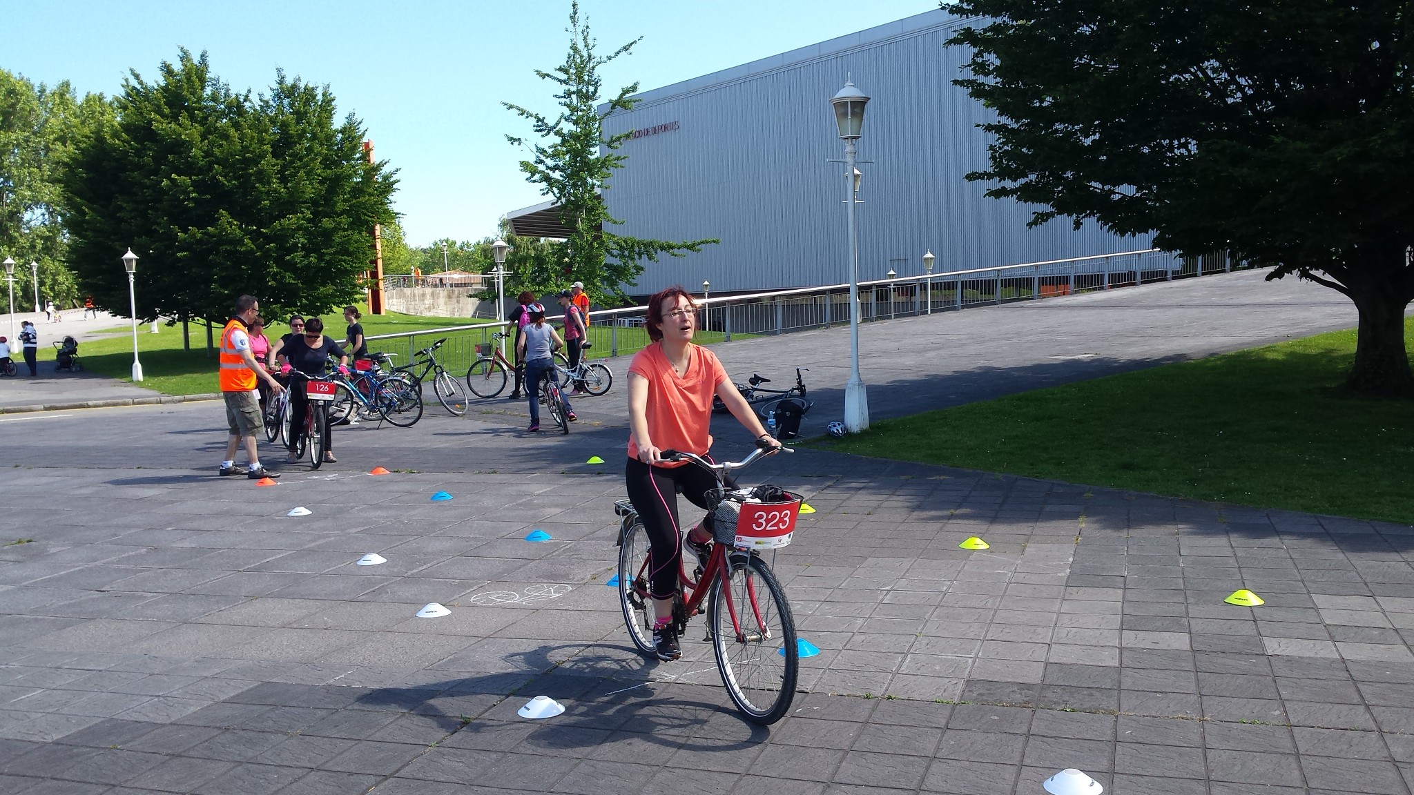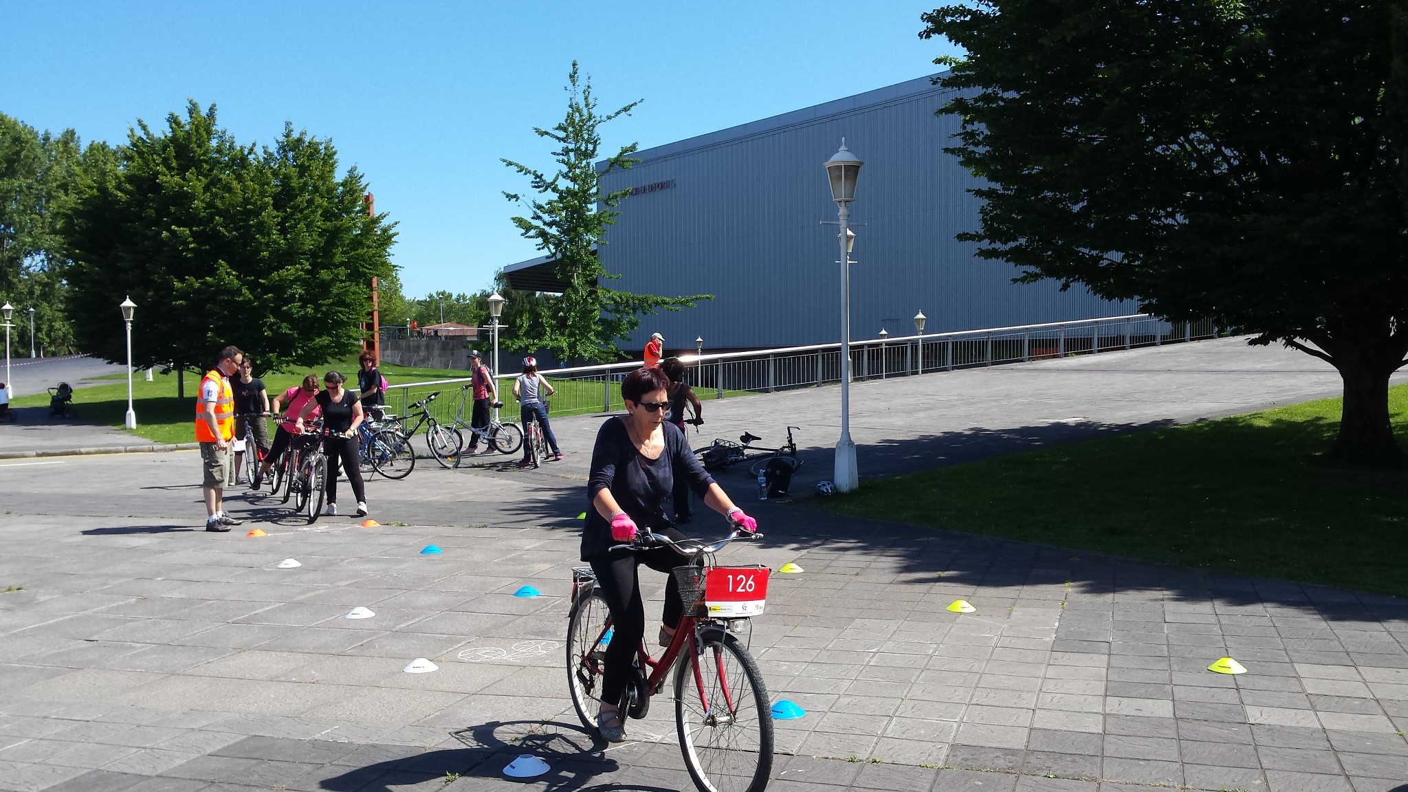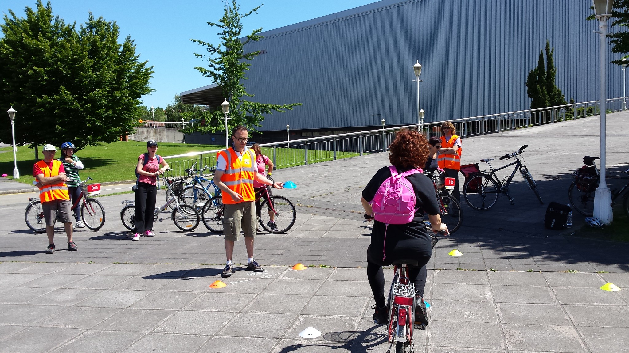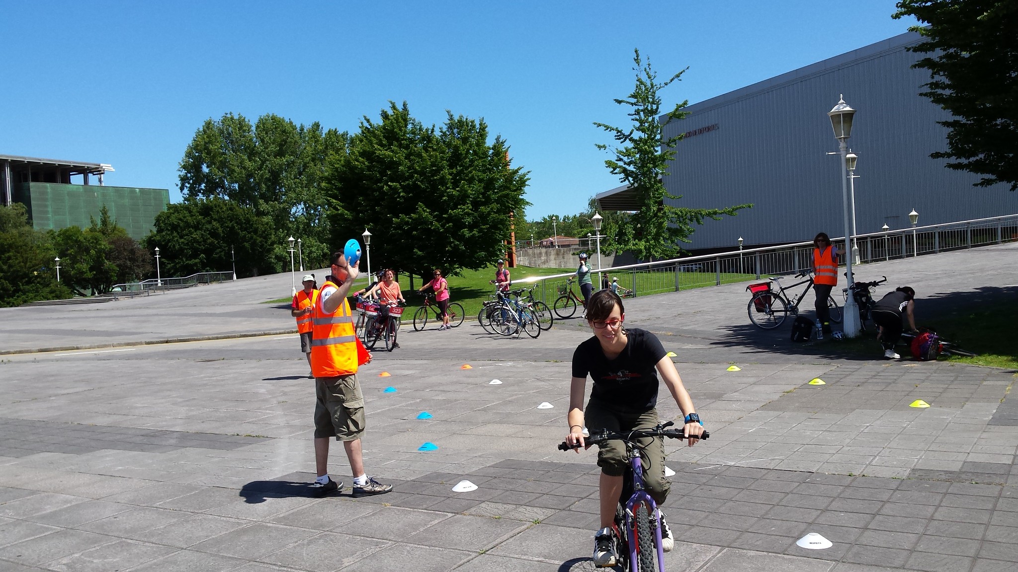A las que asistieron al curso de nivel 1 (habilidades ciclistas) disfrutaron de un circuito en el que fueron desafiados a 10 módulos dinámicos explicándoles la situación real de donde debían aplicarla. Ropa y calzado apto para el ciclismo, la regla de la M para realizar una revisión rápida de la bici, como apoyarla, coger, montar y desmontar de la bici, arranque, pedaleo y parada, control de dirección mediante un slalom de conos, uso de las marchas, frenadas de emergencia tanto con uno, otro o ambos frenos, esquivar obstáculos, señalizar maniobras tanto a la derecha como a la izquierda así como saber mirar en varias direcciones era la temática básica de esta sesión.