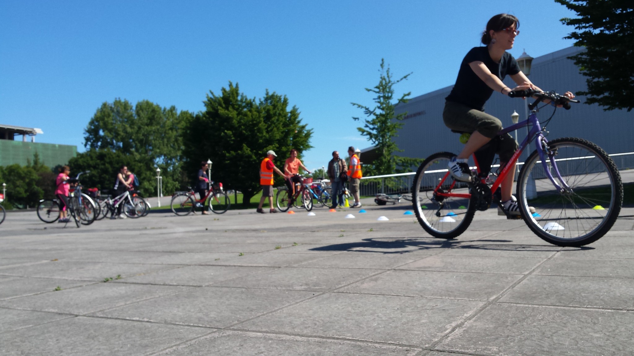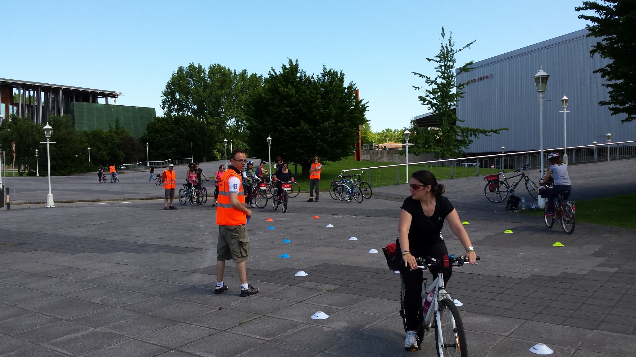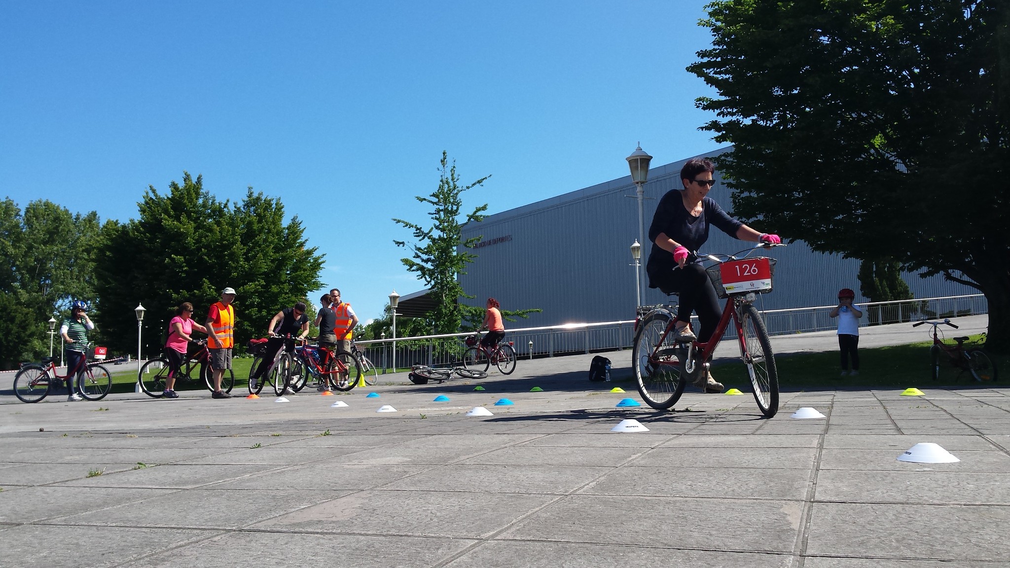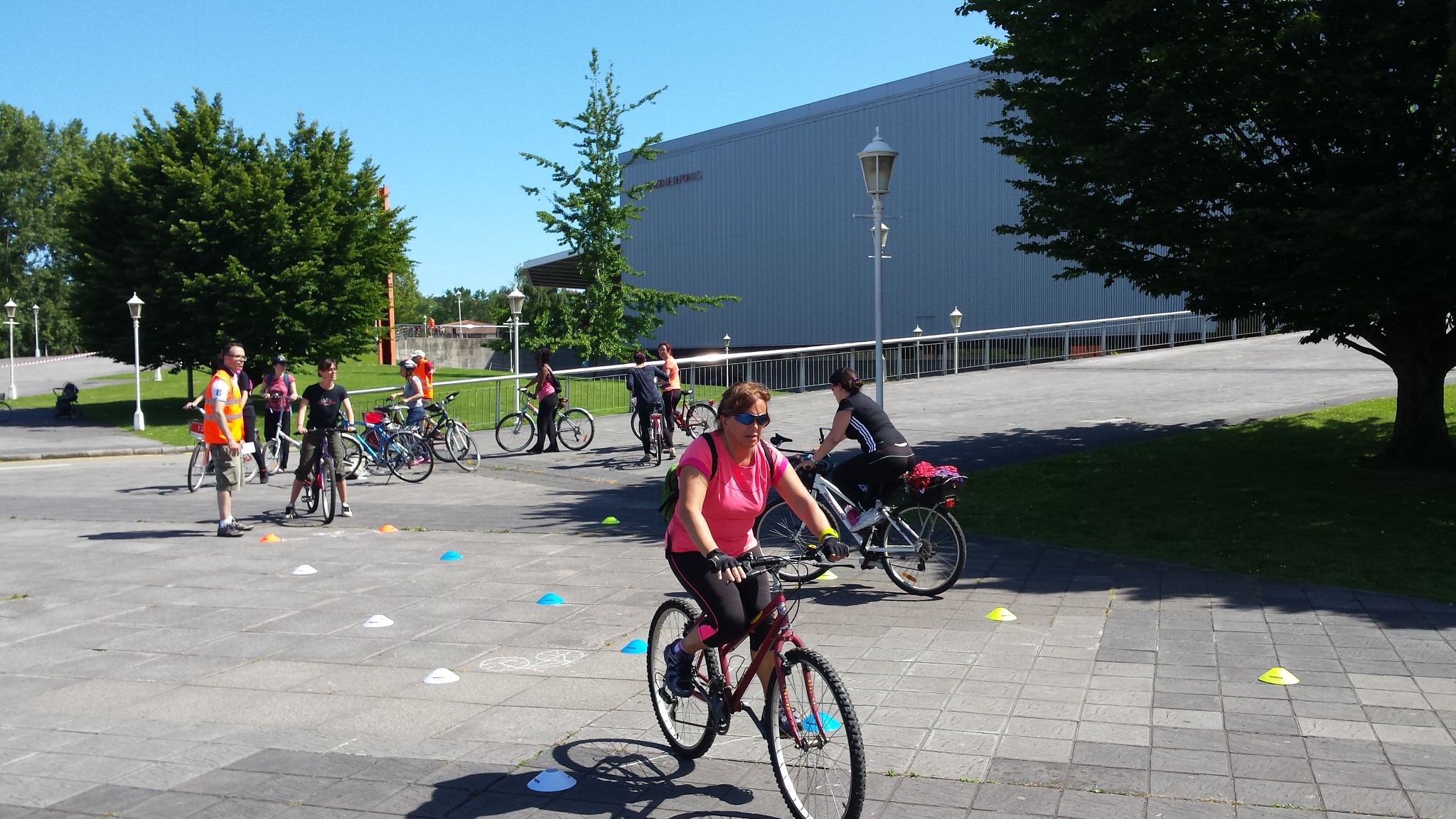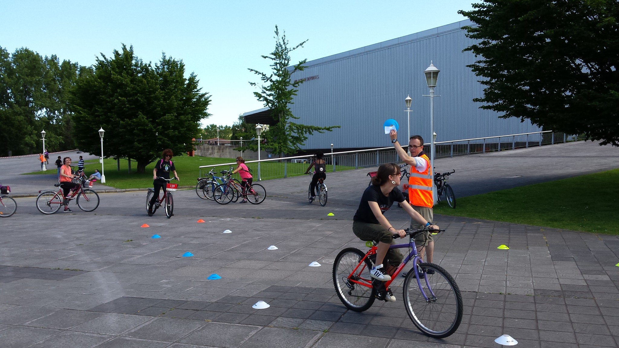 A las que asistieron al curso de nivel 1 (habilidades ciclistas) disfrutaron de un circuito en el que fueron desafiados a 10 módulos dinámicos explicándoles la situación real de donde debían aplicarla. Ropa y calzado apto para el ciclismo, la regla de la M para realizar una revisión rápida de la bici, como apoyarla, coger, montar y desmontar de la bici, arranque, pedaleo y parada, control de dirección mediante un slalom de conos, uso de las marchas, frenadas de emergencia tanto con uno, otro o ambos frenos, esquivar obstáculos, señalizar maniobras tanto a la derecha como a la izquierda así como saber mirar en varias direcciones era la temática básica de esta sesión.
