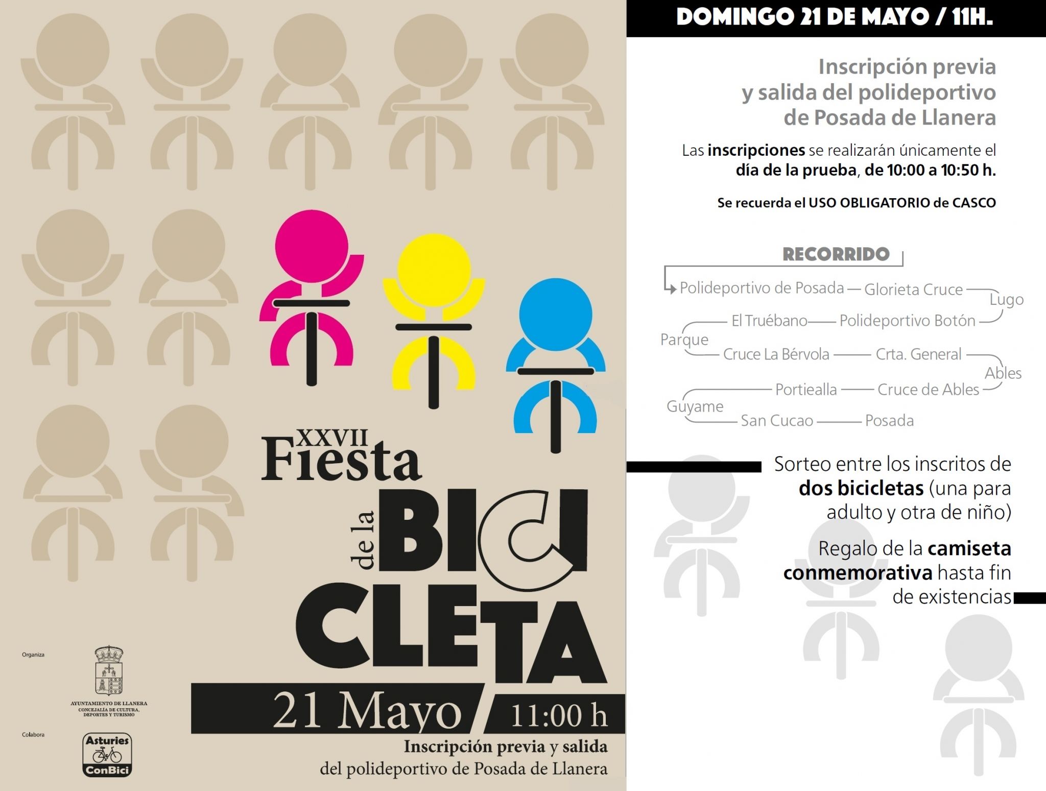 XXVII Fiesta de la Bicicleta Llanera, 21 mayo 2017 (0 viendo) Asumiendo responsabilidades, la inscripción en estas rutas cicloturistas y/o actividades englobadas en nuestro calendario supone la aceptación de todas las condiciones que se indican para poder realizarla, y el conocimiento y aceptación de las