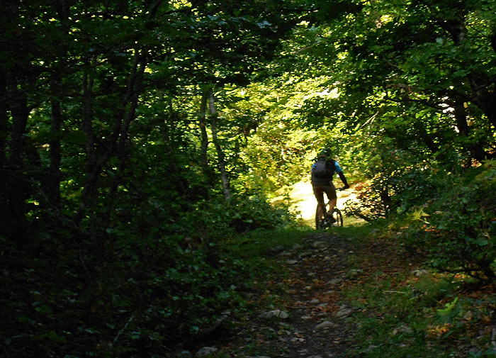 | Tiene razón Fon, ayer llegamos muy tarde y un "poquitín" cansados como para darle al botón de3 encendido del ordenador ja, ja, ja. Una ruta ESPECTACULAR. Un día estupendo, un guía excelente y unos compañer@s de ruta de 1ª categoría. El paisaje impresionante (enviaré las fotos a Julio para que las cuelgue). La ruta bastante dura, pero la hicimos a un ritmo llevadero, y tanto es así que estuvimos unas 9 horas sobre las bicis mas 1,5 horas entre paradas para reagruparnos y para "repostar". Total casi 11 horas de ná. Estábamos advertidos y se cumplió la advertencia....(el algodón no engaña je, je, je). Algunas bajadas muy trialeras y muy técnicas. Tanto que ni siquiera me sirvió mi sistema "chopper", y tuve que echar pié al suelo. Gracias a tod@s por haber hecho posible este día tan estupendo. Un abrazo y hasta la próxima. Rafa III. | |