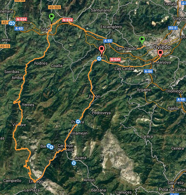 Itinerario: Oviedo, Grado, Villabre, Pto de Marabio, Trubia y Oviedo.
