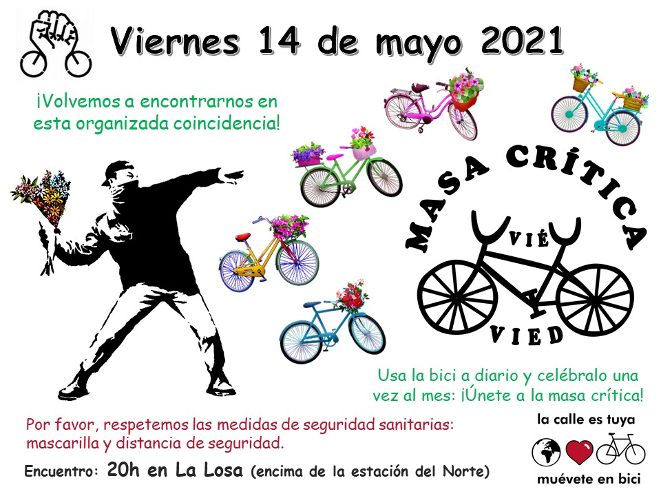 Este próximo viernes 14 de mayo nos encontraremos de nuevo en esta organizada coincidencia donde ciclistas de toda índole y ajenos a cualquier organización, se unen para dar un grato paseo en plan festivo reivindicando el derecho a circular con seguridad por las calles de la ciudad.