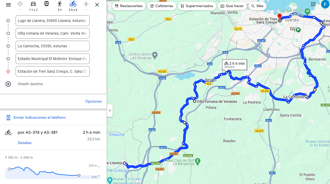Este domingo voy a hacer una ruta desde Lugo de Llanera a Gijón visitando por el camino la Villa Romana de Veranes y recorriendo parte de la Senda de la Camocha y la del Pilés hasta llegar a Gijón. Parte del recorrido no lo he hecho nunca por lo que es una ruta de exploración para incluirla en el calendario de 2025.