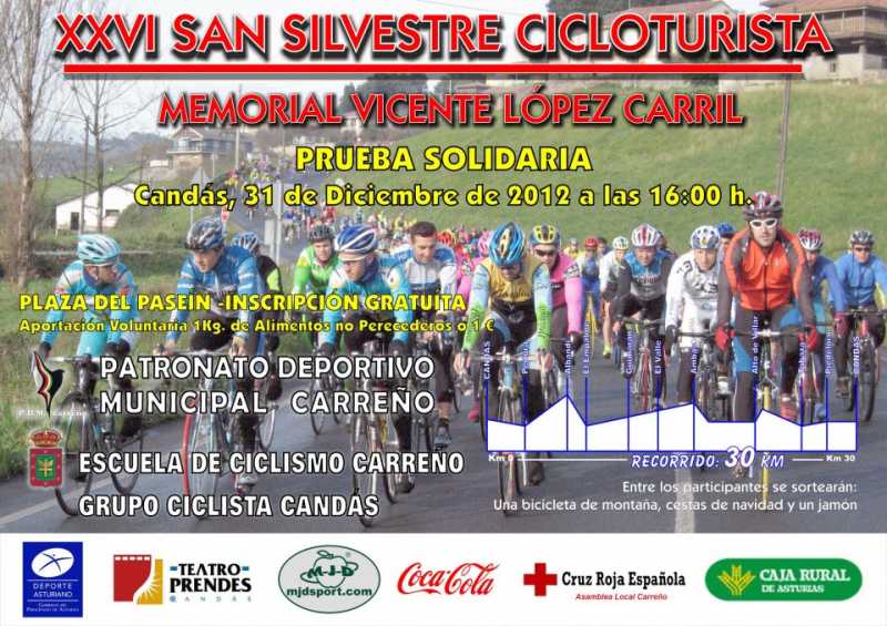 Os recordamos la celebración de la XXVI San Silvestre Cicloturista, este año con un carácter solidario, todo aquel que vaya a participar puede donar 1€ o un kilo de comida no perecedera que se donará a Cruz Roja. Podéis descargar la inscripción desde este enlace: