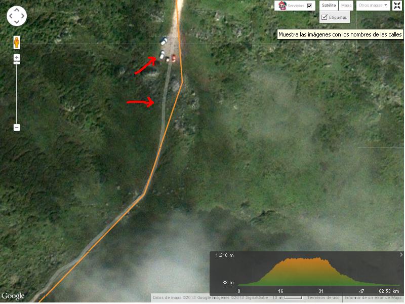 | Perfíl y trazado del GPS de mi móvil en Wikiloc: es.wikiloc.com/wikiloc/view.do?id=5385778 Visto lo visto, supongo que Carlos consultó el "Google maps" y se apoyó en esa información para trazar la ruta, información por parte de Google maps, en mi opinión, como mínimo, algo "imprecisa". Fijaros en la vista de satelite. Le quitais "etiquetas", y en el km 33,5 veréis lo que los de Google consideran un "camino", con la misma "jerarquía" que el que había después de donde terminaban las piedras y empezaba la pista de tierra compactada. Por lo demás, insuperable la belleza de los paisajes, los conocidos por todos, y los nuevos de la zona "prohibida para ciclistas", además, y sobre todo, la de los paisajes que nos acompañaron en el descenso de la pista de cemento. Paisajes, en este último caso, que pude disfrutar en muy agradable compañía  | Última Edición: hace 12 años, 3 meses Por Bici Paseos. |