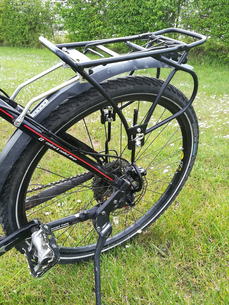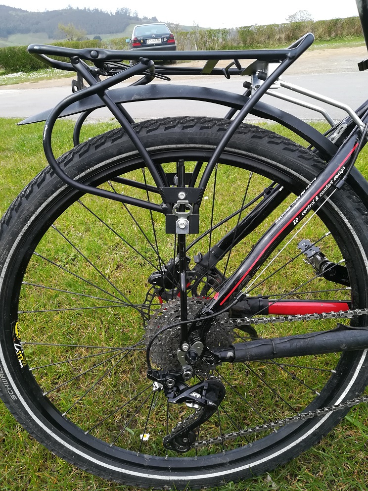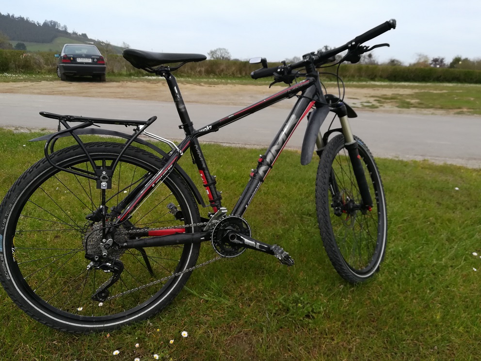 Preparada para cicloturismo: Pata de cabra, portabultos nuevo, guardabarros, cuernos, espejo y cubiertas marathón a medio uso.