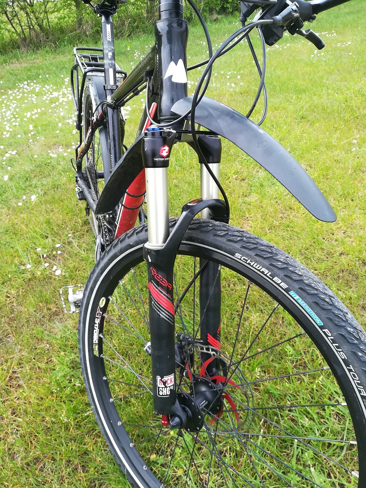 Horquilla Rock Shox Reba con bloqueo en manillar y el mantenimiento recién hecho.