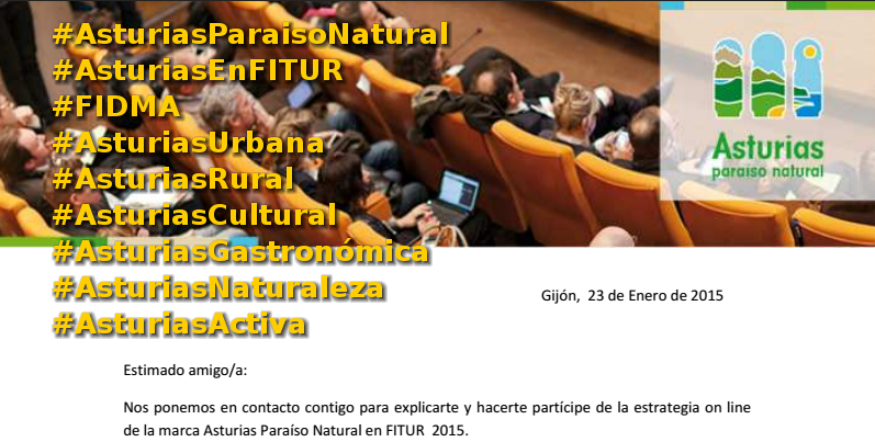 www.turismoasturias.es) estará en la Feria Internacional de Turismo #Fitur2015. Para promocionar #Asturias como destino podéis ayudar al Social Media Wall que se instalará usando los hashtags temáticos en las fotos que queráis compartir. #AsturiasParaisoNatural #AsturiasEnFITUR #FIDMA