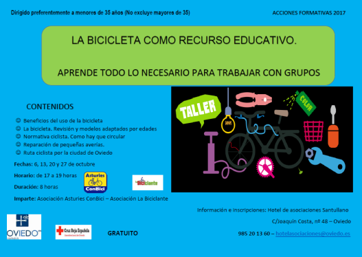 de 17 a 19 horas Imparte: Asociación Asturies ConBici - Asociación La Biciclante