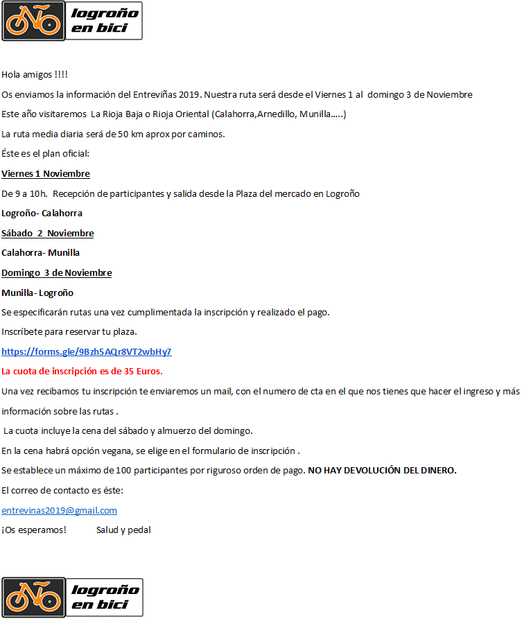 Re: ENTREVIÑAS 2019 - MINIENCUENTROS CICLOTURISTAS POR LA RIOJA hace 6 años, 3 meses #122139