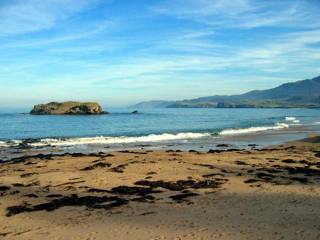 Descripción de la ruta.Esta es una ruta de gran atractivo paisajístico, pues partiendo de la capital del concejo de Piloña llegaremos por la AS-258 hasta el concejo de Colunga, más concretamente a la playa de La Isla. Esta carretera apenas sin tráfico discurre con mucho arbolado de la familia de las mirtáceas, eucaliptos en particular, y teniendo siempre como acompañante a la Sierra de El Sueve. Su dificultad es moderada, no aconsejable para quienes no estén acostumbrados a rodar ni subir largas distancias. Tras dejar atrás Infiesto, villa avellanera por excelencia, conectaremos con la localidad de Pintueles desde donde vamos a ir en subida tendida durante 14 kilómetros hasta el Alto de la Llama, con alguna rampa corta más dura. En el alto hay un bar en el que pararemos a tomar algo y después serán 15 kilómetros de merecida bajada hasta la villa de Colunga y de ahí por carretera local hasta la playa donde nos daremos un merecido chapuzón aprovechando también para comer de bocata o, el que quiera, de menú. Estatua homenaje a las avellaneras, Infiesto | El Peñón, Playa de La Isla, Colunga | Playa de La Isla, Colunga |
