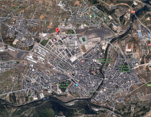 | Voy a cambiar el punto de encuentro ligeramente, en vez de quedar en el antiguo aparcamiento de Carrefour, vamos a quedar bajo la torre de la rosaleda (creo que es el hotel celuisma el que está al lado) allí también tenéis mucho espacio para aparcar fácilmente. Toda esa zona es buena. Está cerquita del punto inicial de quedada. Repito, nos vemos bajo la torre de la Rosaleda, no tiene pérdida, el edificio mas alto y mas feo que veáis en Ponferrada. De esta manera modifico un poco la salida y nos ahorramos unos kilómetros y un par de puntos malos de tráfico. | |