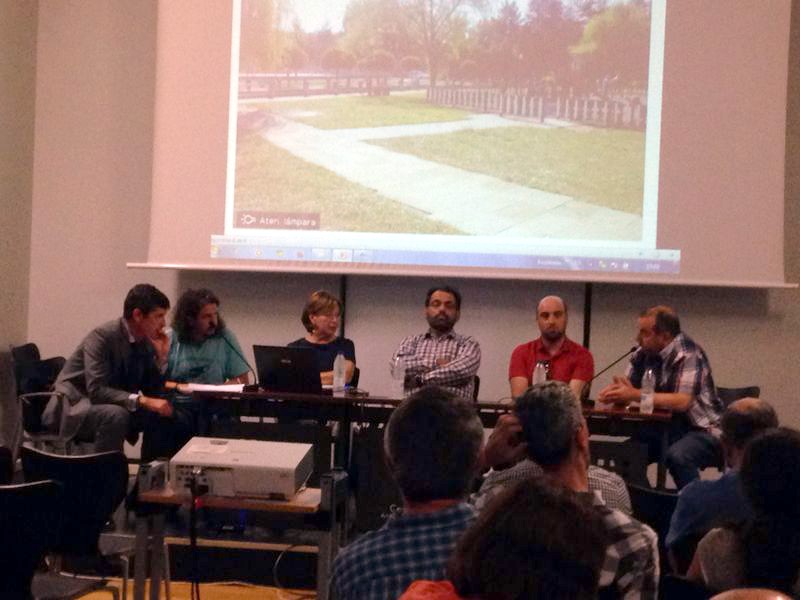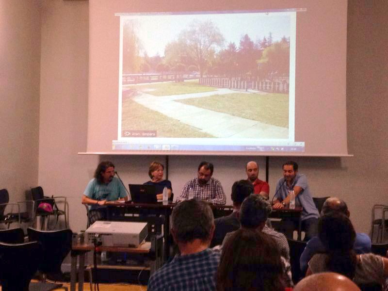 Como podréis ver en el programa de actividades la Semana Europea de la Movilidad que esta semana nos atañe, ayer martes 16 de septiembre de 2014, Rafael Fernández, ex-presidente de Asturies ConBici, abrió nuestro programa participando en este animado coloquio junto a otros representantes de diversas asociaciones e instituciones —también ciudadanos a modo particular— para dar a conocer inquietudes y así entre todos intentar dilucidar soluciones haciendo de Gijón una ciudad más agradable. Y es que los ciclistas nos quejamos de los coches y los coches de los ciclistas, pero aquí el que peor sale parado es el peatón, que se queja de todos —y con todas las de razón— ya que se le está restando espacio debido a que actualmente el coche es el rey y la bicicleta está en auge. Desde Asturies ConBici tienen todo nuestro apoyo ya que no concebimos una ciudad para las máquinas sino destinada para las personas. Muestra de ello es nuestro Manifiesto por el respeto peatonal que anteriores ocasiones también hemos tenido la posibilidad de defender. El debate, moderado por el concejal de movilidad Rafael Felgueroso, tuvo lugar en el Antiguo Instituto y contó, entre otros, con la participación de la presidenta de la Federación de Asociaciones de Vecinos de la zona urbana, Tita Caravera, uno de los redactores del PGO, Marcos Ortega y representantes de la Asociación Española de Accidentología Vial y Asturies ConBici, Raimundo García y Rafa Fernández, respectivamente. Actualmente «el coche es el rey» —recalcó Rafa. «La ciudad es, sobre todo, de quienes la recorren a pie» —sentenció Caravera. Es necesario «recorridos naturales» pensando en los peatones —explicó Raimundo.