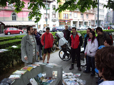 Gracias a todas las personas que participasteis el sábado en "¡Que rueden los libros!". "Muchos, muchos libros y una gran participación pero... no se habría logrado sin la combinación de esfuerzos y trabajo por parte de Asturies conBici, Masa Crítica Asturies, SELÍN literatura y también de los y las bookcrossers de Asturias, Barcelona, Madrid, Cantabria, Galicia y Málaga. Un trabajo en equipo que fue clave del GRAN ÉXITO obtenido en esta liberación asturiana Varios medios de comunicación se interesaron por el evento (incluída la TPA, televisión autonómica del Principado de Asturias). También se contó con la presencia sorpresa de la alcaldesa de Avilés." Texto sacado de "Éxito trabajando en equipo", de BookCrossing Asturias. Prensa: Los libros buscan dueño por la calle (La voz de Avilés)