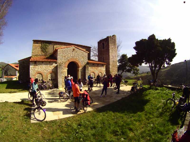 Después de la parada seguimos por la carretera para llegar a la entrada de Tudela Veguín, seguimos subiendo por la misma carretera, la misma no tiene arcen y pasan algunos coches hay que ir con cuidado. Pasamos por varios pueblos hasta llegar a Bendones que con fuerte bajada nos conducirá a la Iglesia Prerrománica. Pararemos un ratín para comer y ver la Iglesia por fuera, lo de entrar a verla está complicado. Iglesia de Santa Maria de Bendones, templo construido entre 792 y 842, considerado una de las joyas del arte prerromanico asturiano,monumento nacional en 1958, construida durante el reinado de Alfonso III de Asturias, Después de comer iniciamos la rutina cogiendo la pequeña carretera que sale a la derecha cuando sales de la Iglesia. Es una fuerte bajada con curvas, estrecha y puede pasar algún coche. Al poco de continuar por esa carretera sale un desvío que es un poco betetero la gran mayoría llano y luego ago de bajada, es cortito y le da emoción a la ruta. Finalmente llegamos a un puente por el que ya pasamos antes ya estamos al lado del Polígono de Olloniego, pasamos ese puente de nuevo y continuamos por esa carretera dirección Santianes hasta llegar al pueblo de Olloniego donde está el puente medieval, constaba de cinco arcos de distinta altura, esta fuera del cauce debido al desvio del Nalón por una crecida 1676, y la Torre Muñiz y palacio Bernaldo de Quiros. Mas adelante cogeremos la Senda Barcena-Olloniego tomando dirección Barcena. Cuando acaba enlazamos con otra senda verde hacia Soto del Rey. Acabada la senda pedaleamos hacia delante para coger la N-630 destino Oviedo continuamos unos kilómetros cuesta arriba por esa carretera bastante transitada y justo después del desvío hacia la utopista sale una carreterina que en subida constante nos lleva hasta la zona de la Zoreda. Allí continuamos hasta llegar a la senda Fluvial del Nalón que nos deja en la Senda de Fuso- Oviedo, continuamos por la misma hasta el parque de invierno y una vez allí iremos hasta la Estación de Llamaquique donde acaba la ruta. Es la primera vez que se hace esta ruta, hemos cambiado el recorrido bastante con respecto a otros años, así que animaros a descubrir el entorno de Bendones con esta rutina perprestosa. |